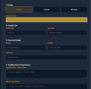 Professional Templates: Choose from Modern, Classic, or Minimalist designs.
